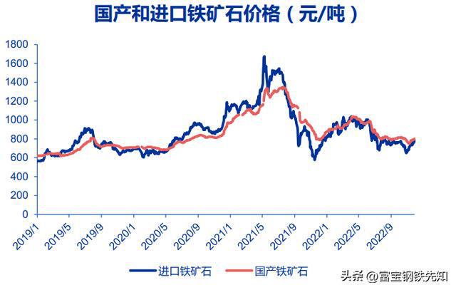 2019-2022國產(chǎn)和進(jìn)口鐵礦石價格趨勢圖