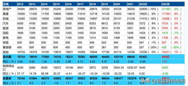 2012-2023我國各行業(yè)鋼材需求統(tǒng)計及預(yù)測
